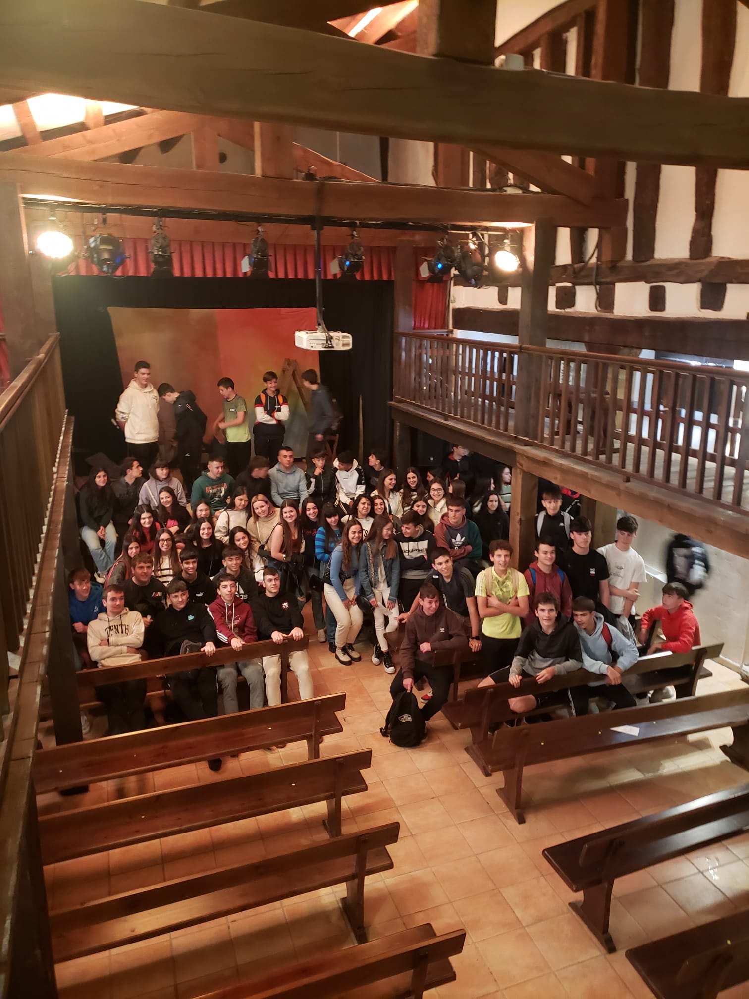 Pudimos comprobar físicamente cómo eran los teatros creados en los patios y corrales de vecinos. La obra ambientaba las aventuras de Quijote y Sancho en su llegada a La Rioja y cómo quería el caballero andante arremeter contra el León dormido que se avistaba a la entrada de Logroño.